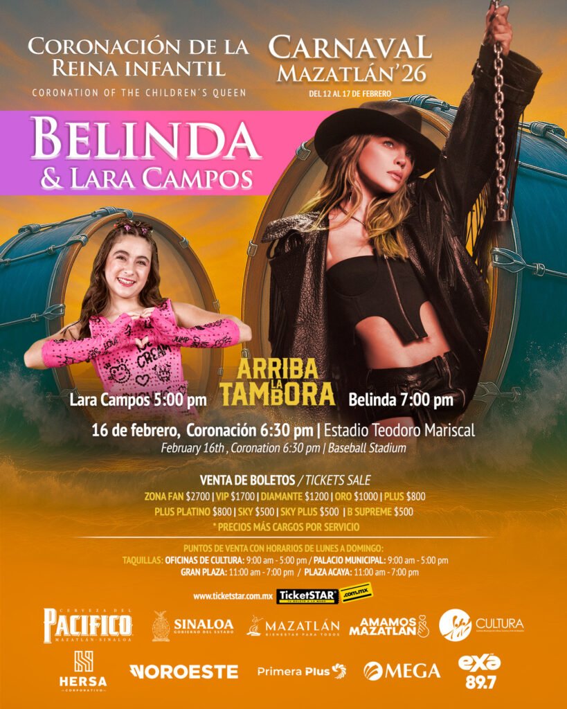El Carnaval Internacional de Mazatlán celebrará su edición 128 del 12 al 17 de febrero de 2026, consolidándose como una de las festividades culturales más importantes de México y uno de los carnavales con mayor proyección a nivel internacional. Bajo el lema “¡Arriba la Tambora!”, esta edición rinde homenaje a la música sinaloense como eje identitario del puerto y símbolo de su herencia cultural.