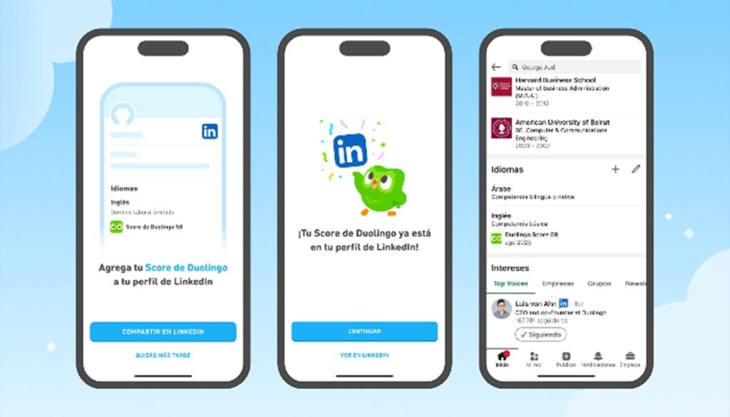 Durante la edición 2025 de Duocon, Duolingo anunció una nueva función que permite a los usuarios vincular su Score dentro de la aplicación directamente con sus perfiles de LinkedIn. Esta herramienta ofrece una forma clara y actualizada de demostrar habilidades lingüísticas dentro de un entorno profesional.